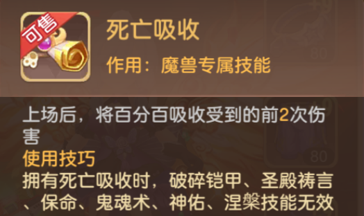 死亡吸收:100%吸收前两次伤害